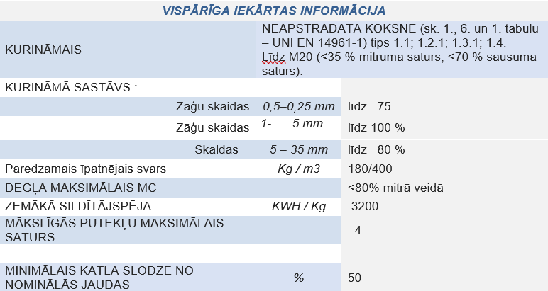 Apkures katls ir projektēts un izgatavots, lai darbotos saskaņā ar standartiem, kas noteikti DECREE –02-1997 N.22, enerģijas reģenerācijai no neapstrādātas un apstrādātas koksnes formēšanas atkritumiem, tostarp: