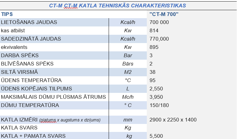 N. 1 APKURES KATLS MOD. CT-M 700 JAUDA 700.000 Kcal/h (800 kW) KARSTĀ ŪDENS RAŽOŠANAI, APRĪKOTS AR: