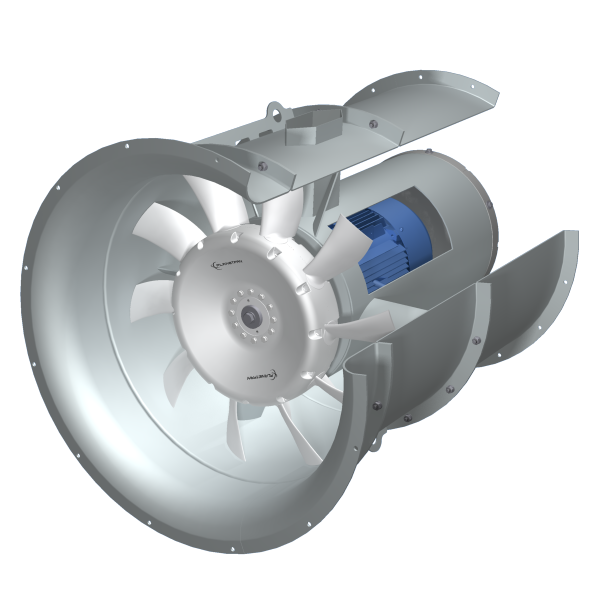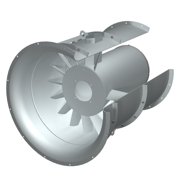 Vidēja spiediena aksiālie ventilatori, kas paredzēti žāvēšanas procesiem iekārtās ar augstu putekļu koncentrāciju un lielākiem cietvielu elementiem gaisa plūsmā, kas var bojāt motoru. Ventilatoru korpusi ir aprīkoti ar kameru, kas efektīvi izolē motoru no gaisa plūsmas. Formētās lāpstiņas, kas izgatavotas no alumīnija, nodrošina augstāku spiedienu un ir izturīgākas darbībai nelabvēlīgos apstākļos. Tos izmanto modernās graudu kaltēs.